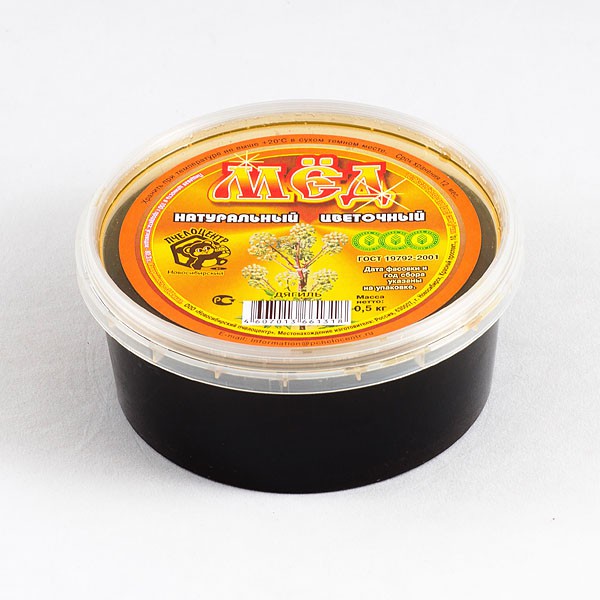 Мёд натуральный цветочный с преимуществом дягиля в пластиковой таре 0,5кг